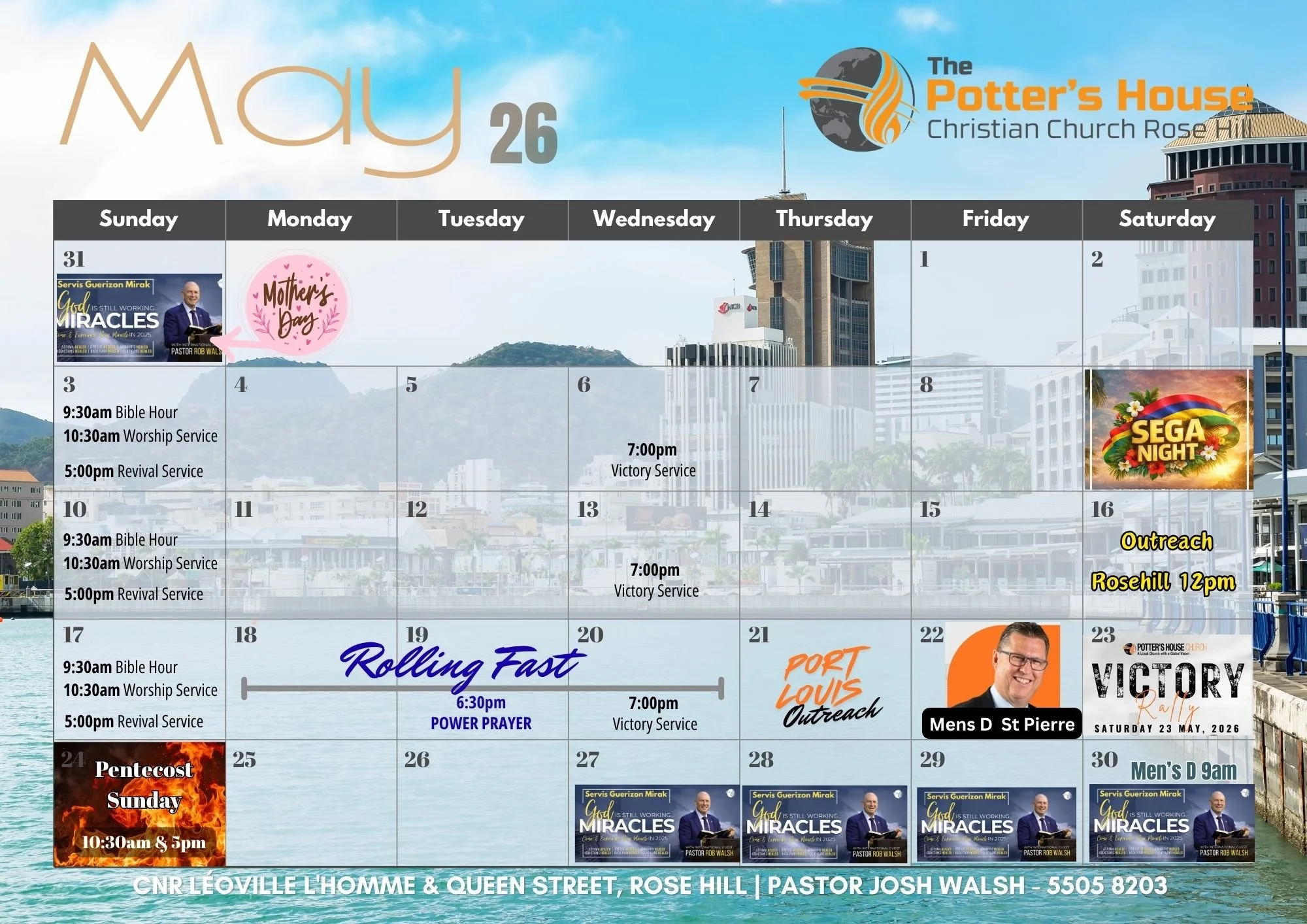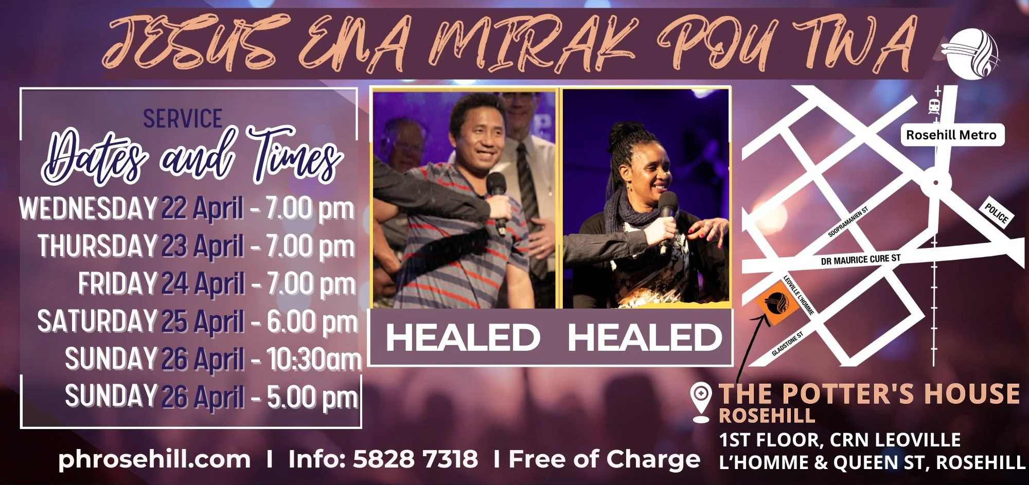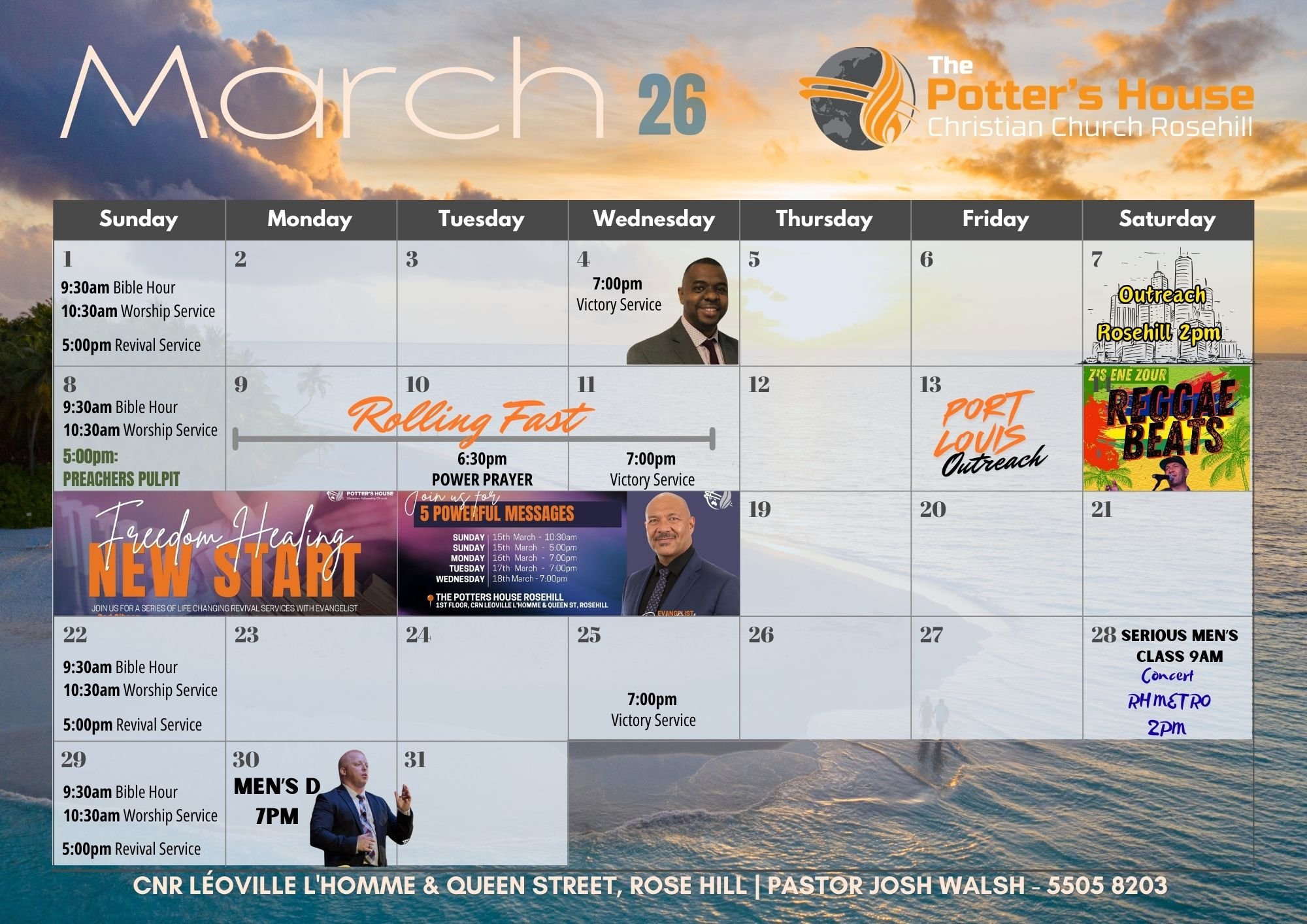 The Potter’s House Church Rose Hill exists as a local congregation to witness to the world of God’s love as revealed in His Son Jesus Christ, our crucified, risen, exalted and soon returning King. We seek to teach the Word of God in the power of the Holy Spirit, in order to fulfil the great commission in Mark 16:15 to “Go into all the world and preach the Gospel to every person". Since, we have seen the power of God to save many people from different backgrounds and today we are a thriving Church and living testimonies of what Christ Jesus can do with surrendered hearts. We look forward to seeing you at one of our dynamic services.
